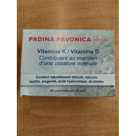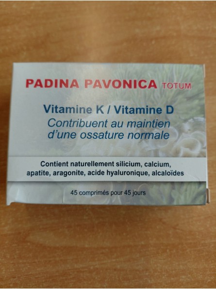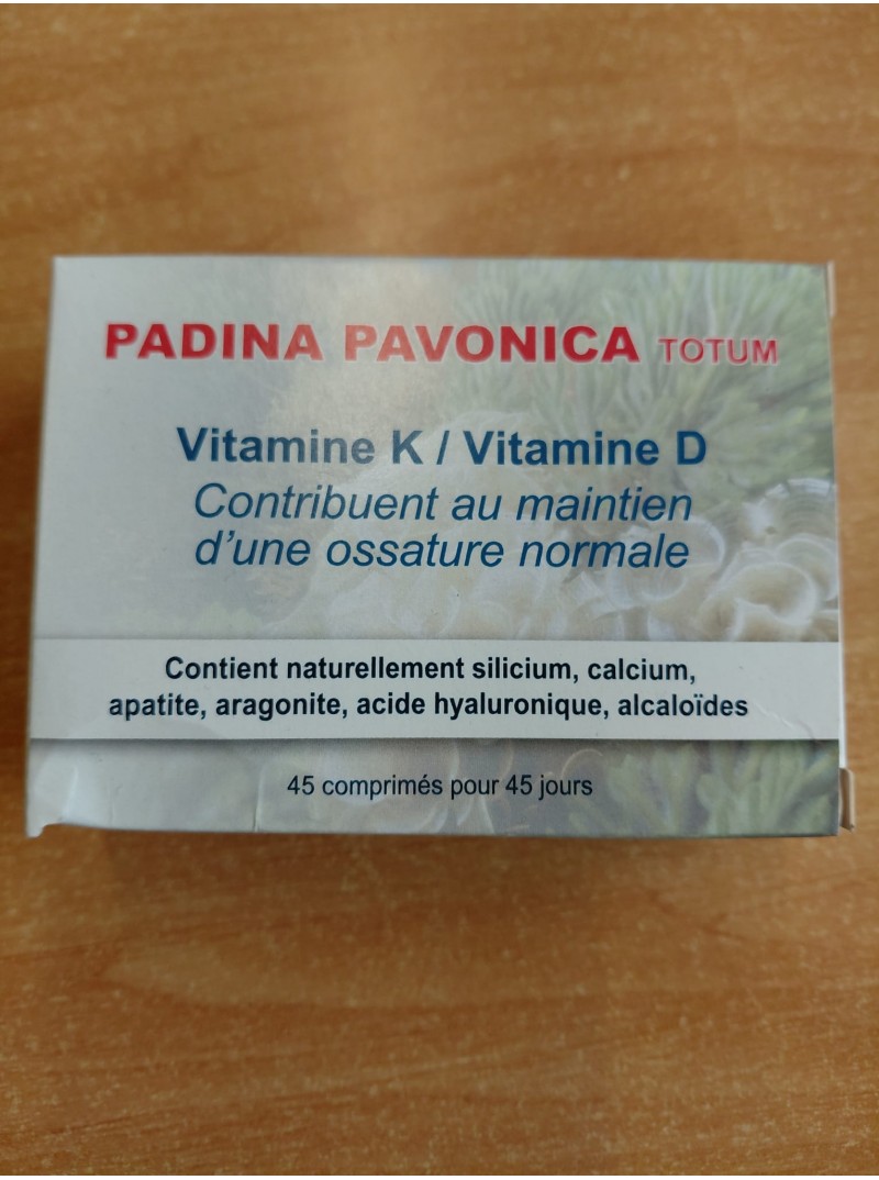 Padina pavonica (totum), maltodextrine, vitamine K, vitamine D, stéarate de magnésium