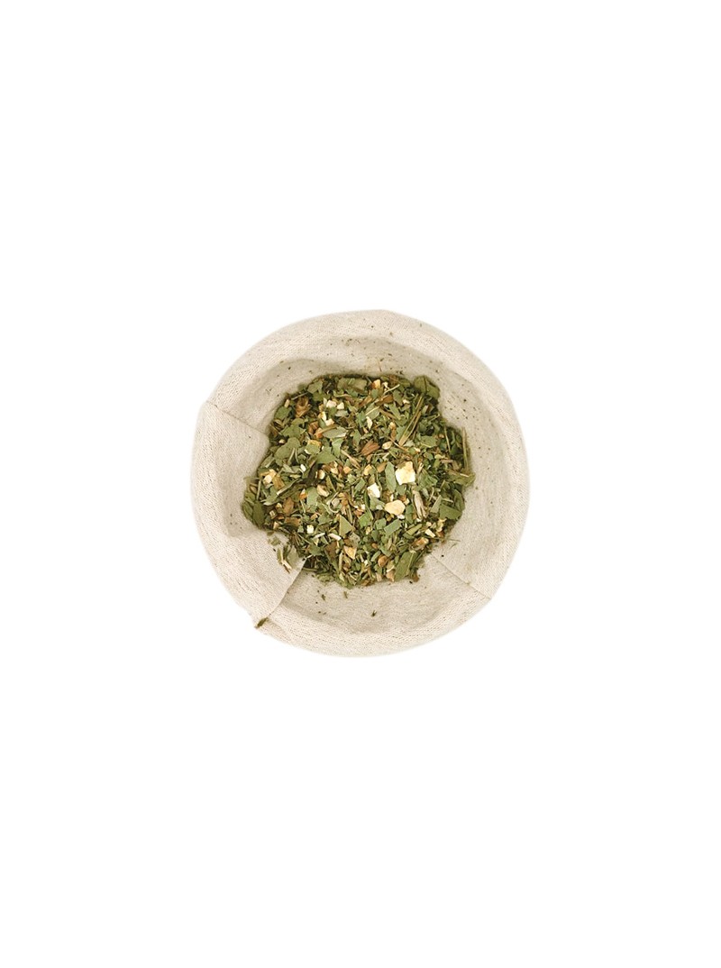 1 cuillère à café de la tisane (2 à 3 grammes) dans une tasse d'eau froide.