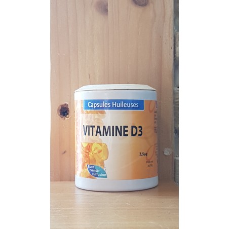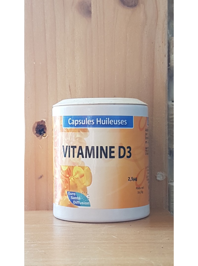 60 capsules dosées à 2.5µg. La Vit. D contribue au maintien d'une ossature normale, à l'absorption normale du Calcium et du Phosphore, et au bon fonctionnement du système immunitaire.